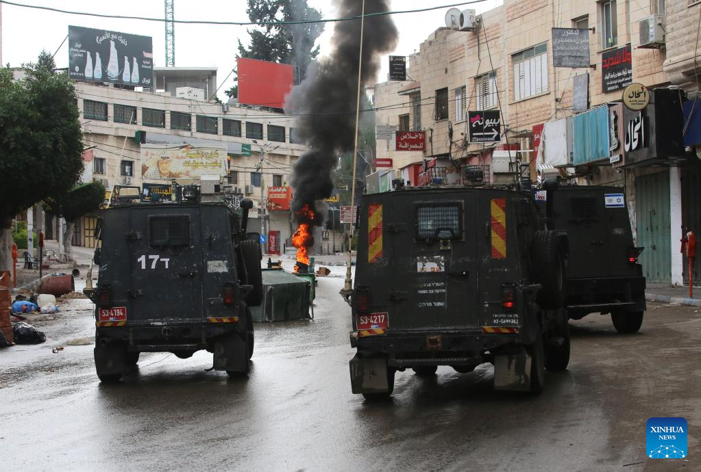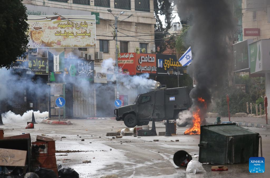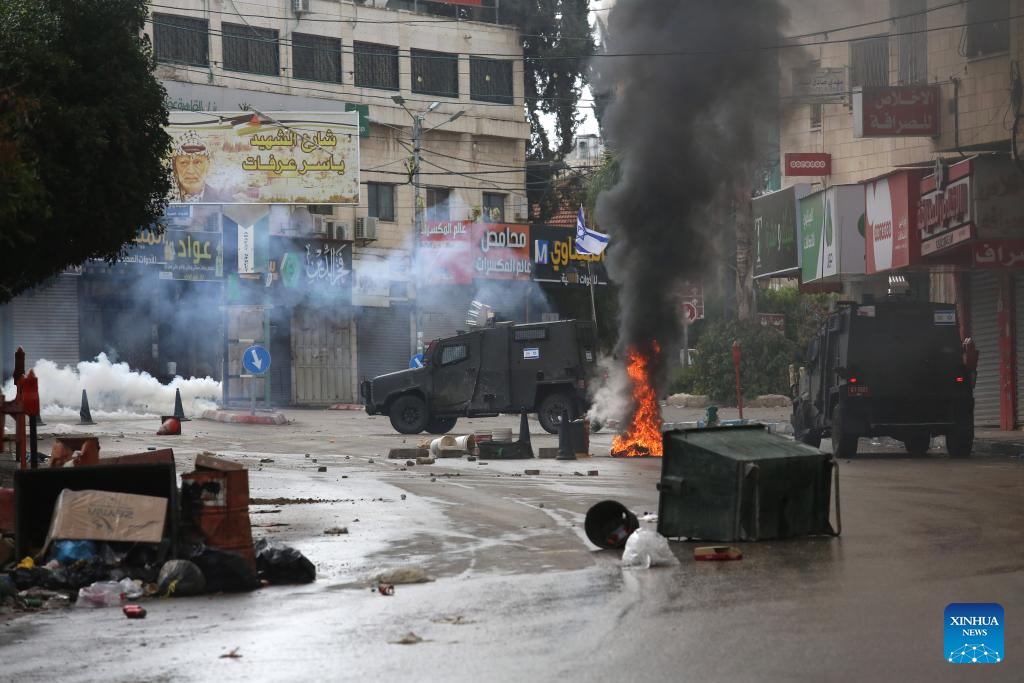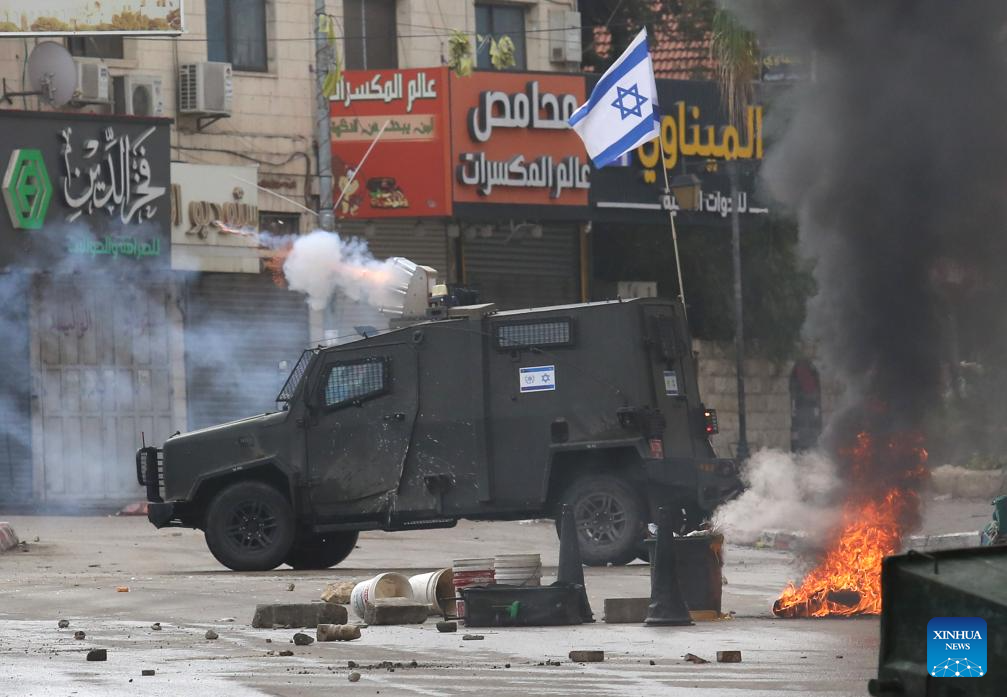 The clashes occurred when the Israel Defense Forces (IDF) was conducting a massive manhunt for Palestinian suspects in the Tulkarm refugee camp, local eyewitnesses told Xinhua.