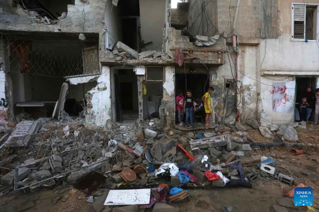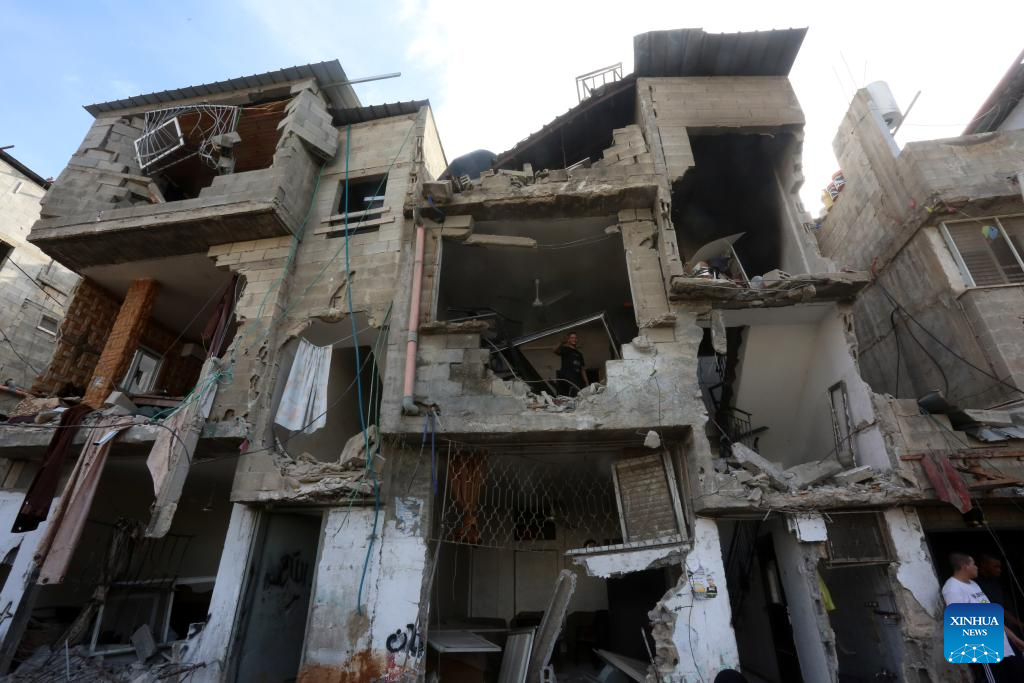 Palestinian people are seen inside a damaged building at a refugee camp in Tulkarm, northern West Bank, on Nov. 14, 2023. At least seven Palestinians were killed on Tuesday in clashes with Israeli soldiers in Tulkarm, northern West Bank, according to the Ramallah-based Palestinian Health Ministry. (Photo by Nidal Eshtayeh/Xinhua)