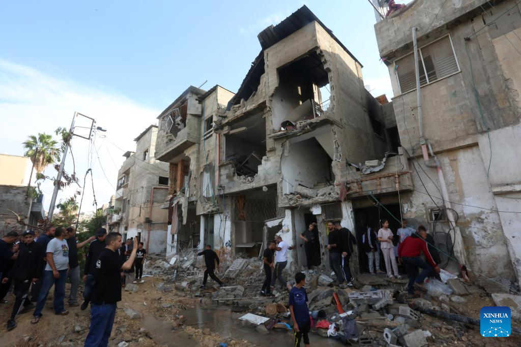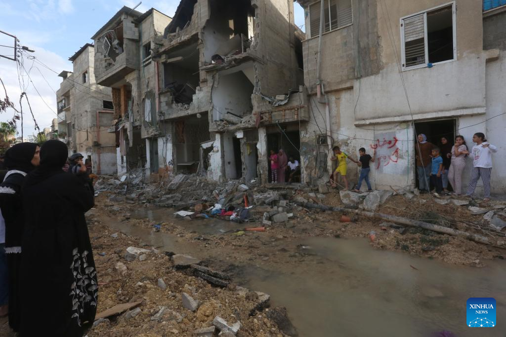 Palestinian people inspect the damages at a refugee camp in Tulkarm, northern West Bank, on Nov. 14, 2023. At least seven Palestinians were killed on Tuesday in clashes with Israeli soldiers in Tulkarm, northern West Bank, according to the Ramallah-based Palestinian Health Ministry. (Photo by Nidal Eshtayeh/Xinhua)