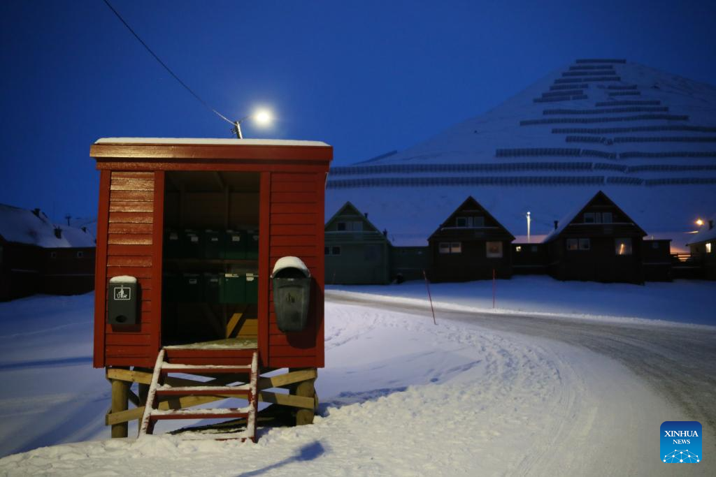 This photo taken on Nov. 14, 2023 shows a cabin for mailboxes in Longyearbyen, Svalbard, Norway. Longyearbyen is situated within the Svalbard archipelago at a latitude of approximately 78 degrees north, about 1,300 kilometers from the North Pole, where a polar night lasting up to four months takes place each year. (Xinhua/Zhang Yuliang)