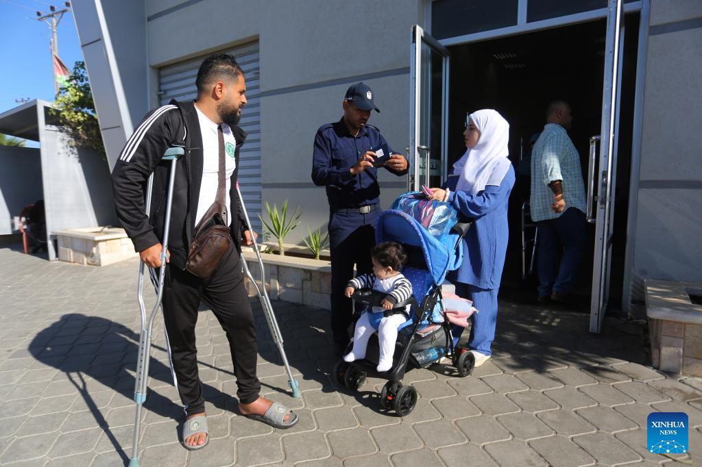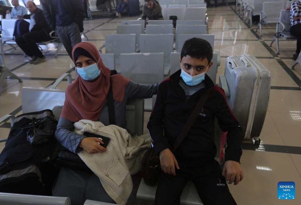 Foreign passport holders prepare to leave the Gaza Strip for Egypt through the Rafah border crossing in the southern Gaza Strip, on Nov. 16, 2023. (Photo by Khaled Omar/Xinhua)