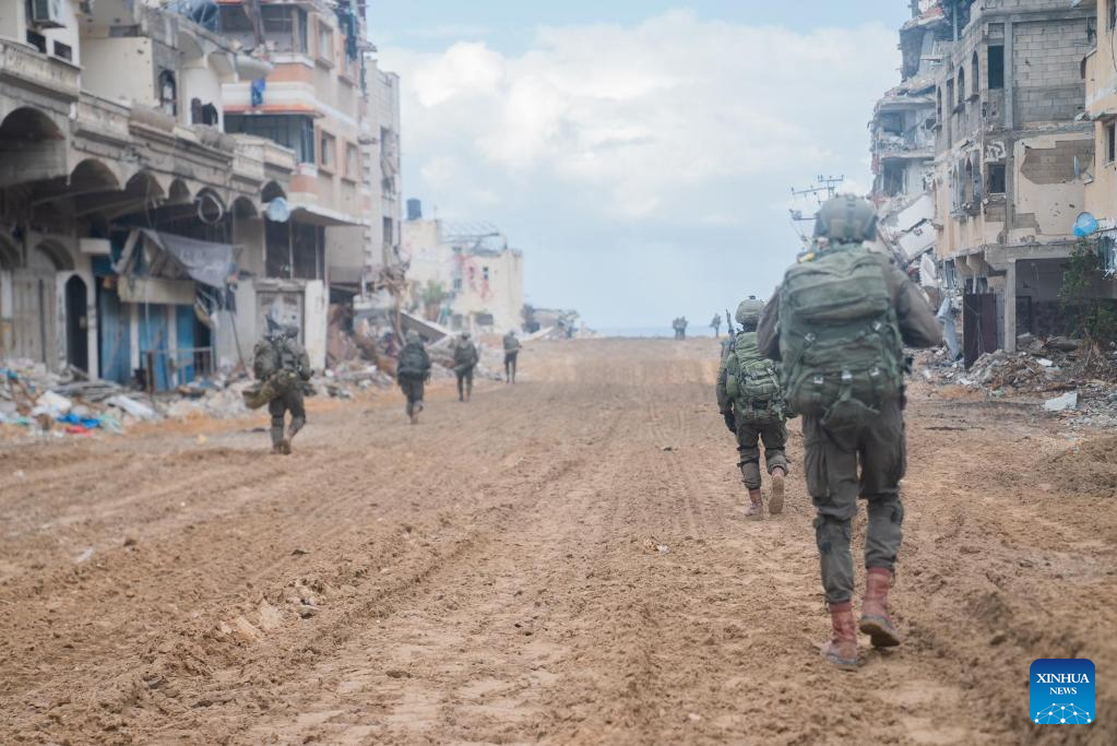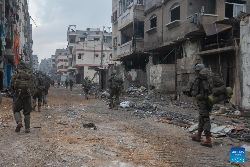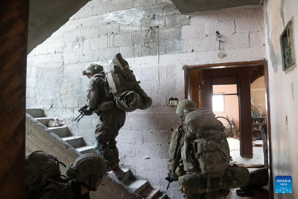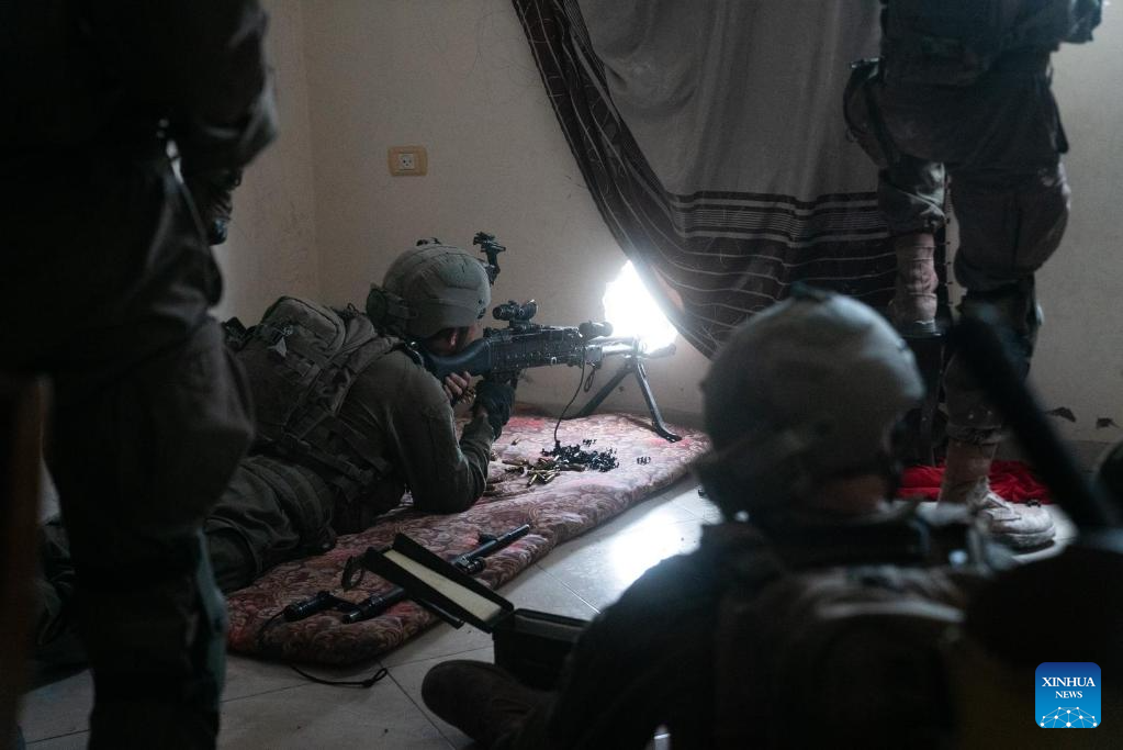 This photo released by the Israel Defense Forces (IDF) on Nov. 16, 2023 shows Israeli troops conducting military operations in western Gaza City. (IDF/Handout via Xinhua)