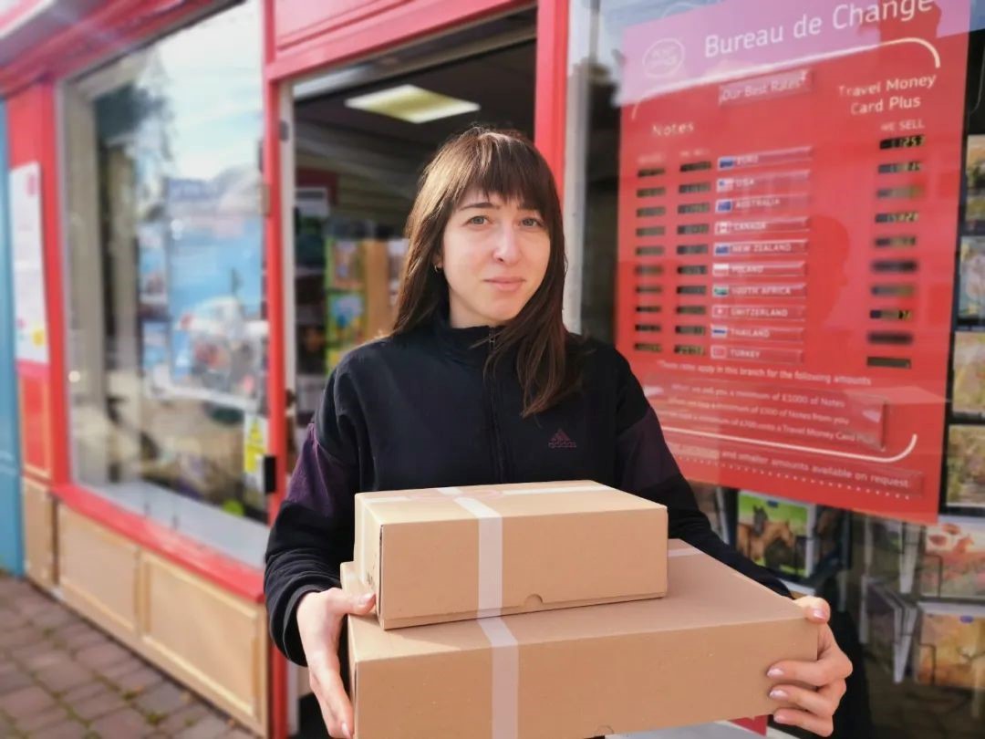 British girl Alexandra receives parcels sent from JD Logistics' self-operated overseas warehouse in Lutterworth, the UK. (Photo/WeChat account of JD Logistics)