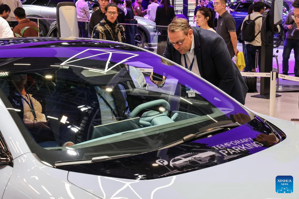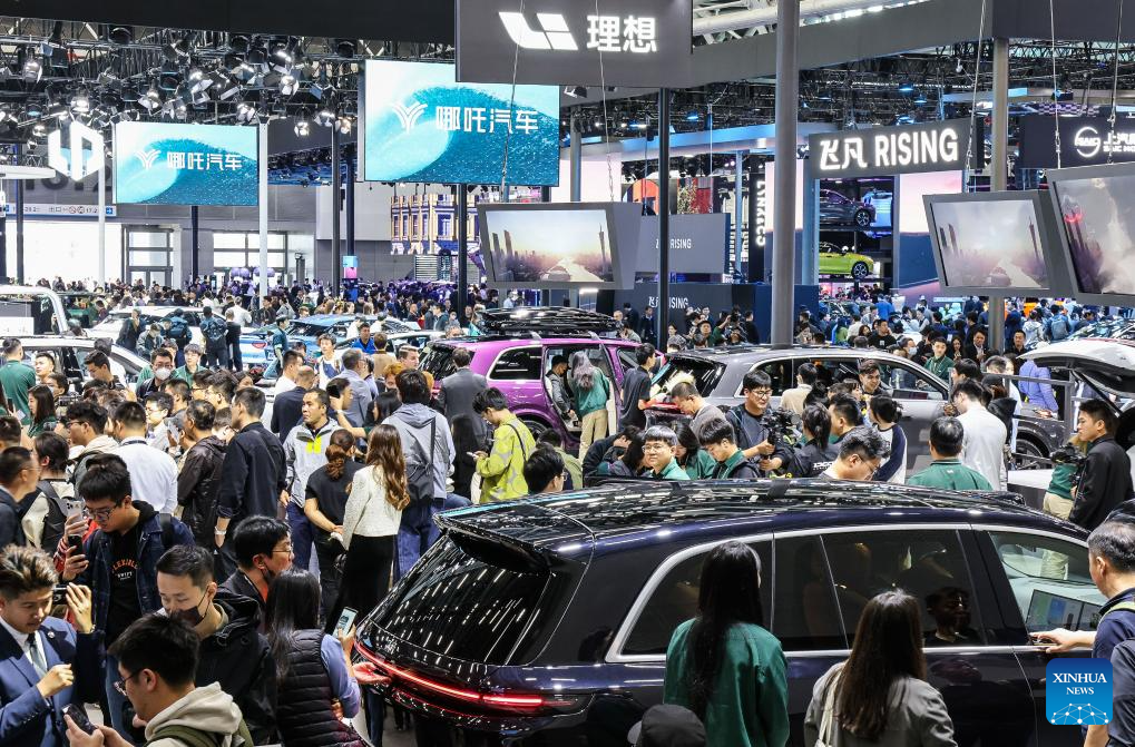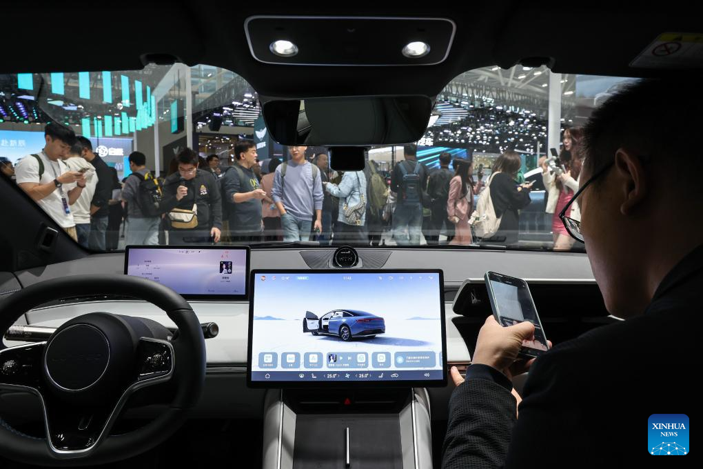 People visit the 21st Guangzhou International Automobile Exhibition in Guangzhou, south China's Guangdong Province, Nov. 17, 2023. The latest achievements of intelligent driving were presented during the ongoing 21st Guangzhou International Automobile Exhibition. (Xinhua/Liu Dawei)