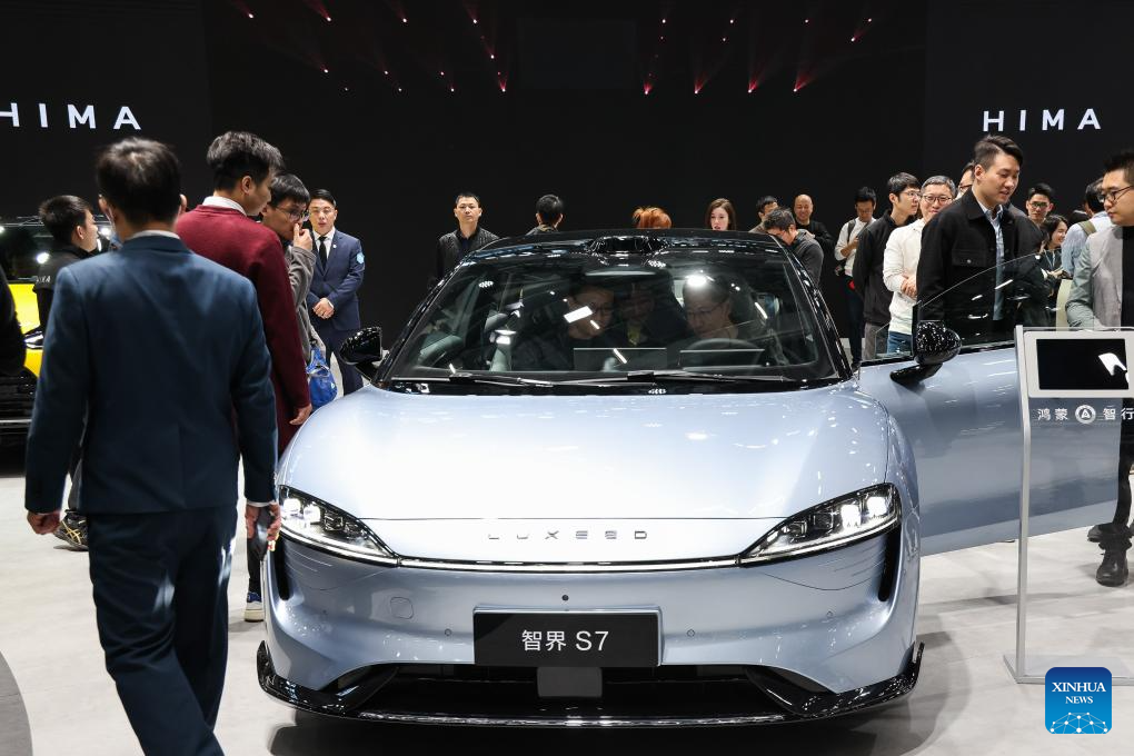 This photo taken on Nov. 17, 2023 shows a Luxeed S7 car exhibited at the 21st Guangzhou International Automobile Exhibition in Guangzhou, south China's Guangdong Province. The latest achievements of intelligent driving were presented during the ongoing 21st Guangzhou International Automobile Exhibition. (Xinhua/Liu Dawei)