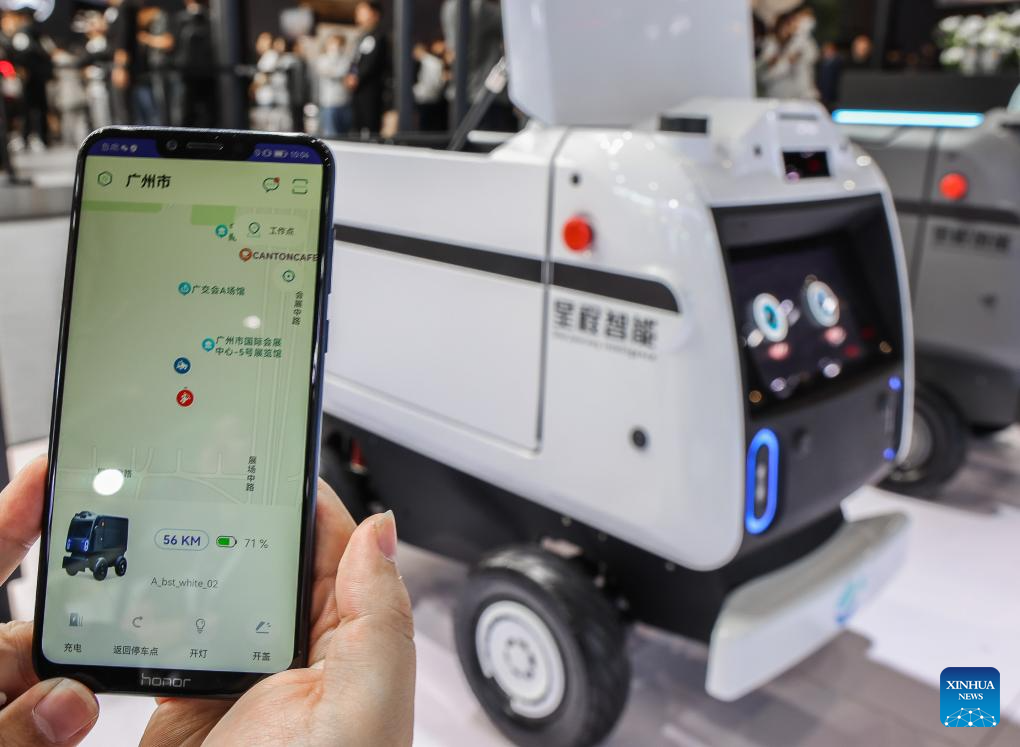 This photo taken on Nov. 17, 2023 shows a self-driving delivery vehicle at the 21st Guangzhou International Automobile Exhibition in Guangzhou, south China's Guangdong Province. The latest achievements of intelligent driving were presented during the ongoing 21st Guangzhou International Automobile Exhibition. (Xinhua/Liu Dawei)