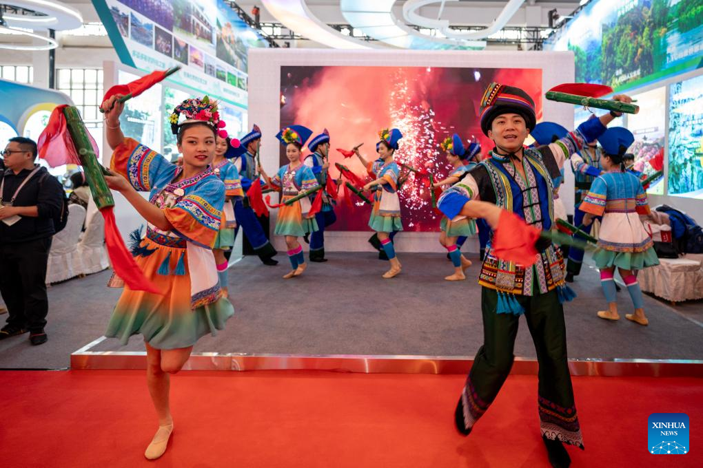 Performers dance during the China International Travel Mart 2023 in Kunming, southwest China's Yunnan Province, Nov. 17, 2023. (Xinhua/Chen Xinbo)
