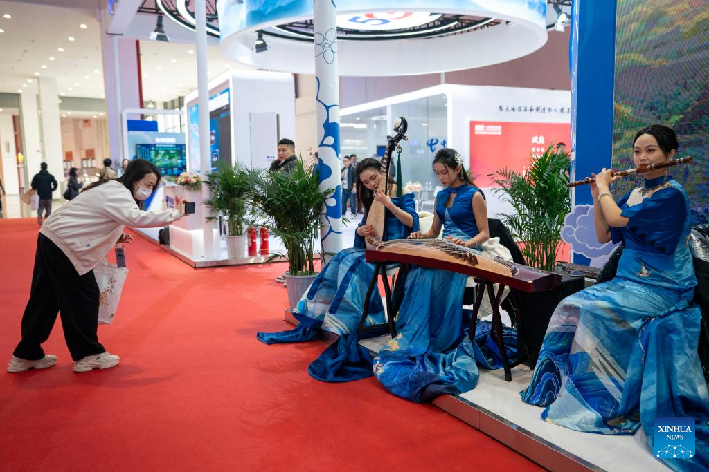 Performers play traditional Chinese instruments during the China International Travel Mart 2023 in Kunming, southwest China's Yunnan Province, Nov. 17, 2023. (Xinhua/Chen Xinbo)
