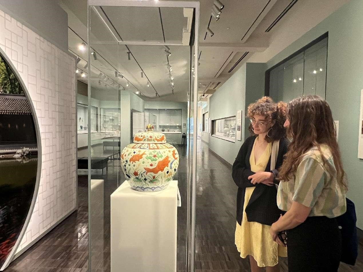 People attend an exhibition on Chinese porcelain recently held at the Asian Art Museum of San Francisco, the United States, Nov. 13, 2023. (Photo by Zhang Bolan/People's Daily)
