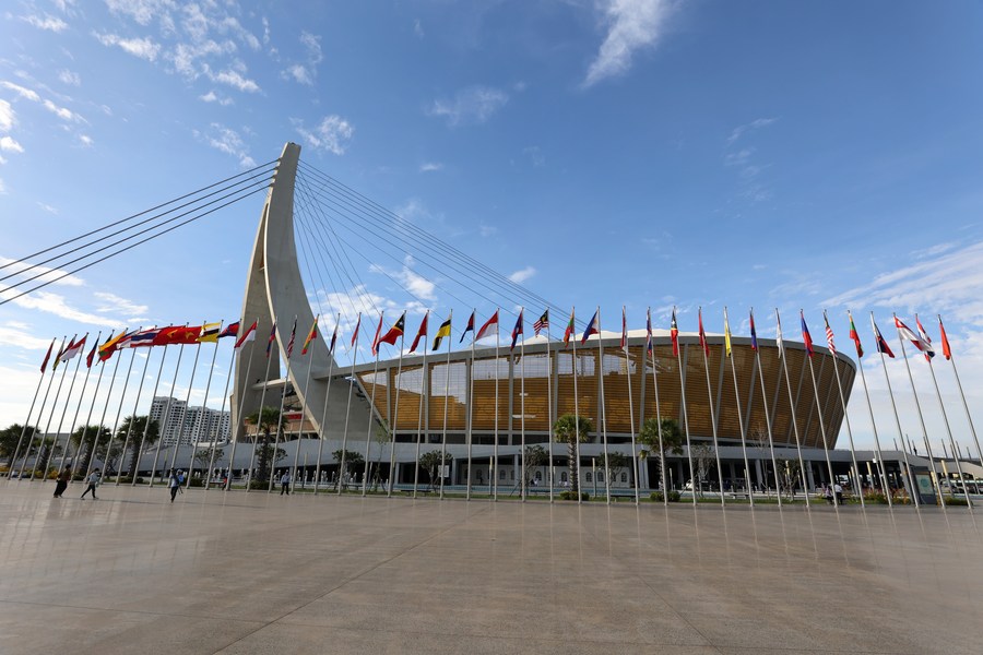 This photo taken on Nov. 17, 2023 shows the China-aided Morodok Techo National Stadium in Phnom Penh, Cambodia. (Photo by Sovannara/Xinhua)