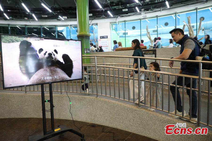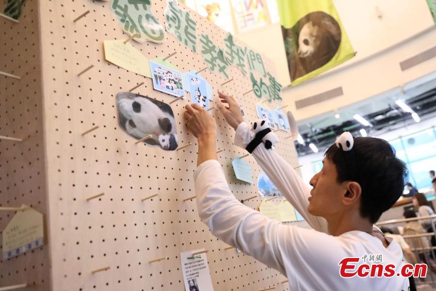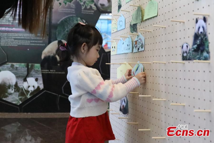 A child puts a card onto a memorial wall to commemorate the one year anniversary of giant panda Tuan Tuan's death at Taipei Zoo, Nov. 19, 2023. (Photo/China News Service)