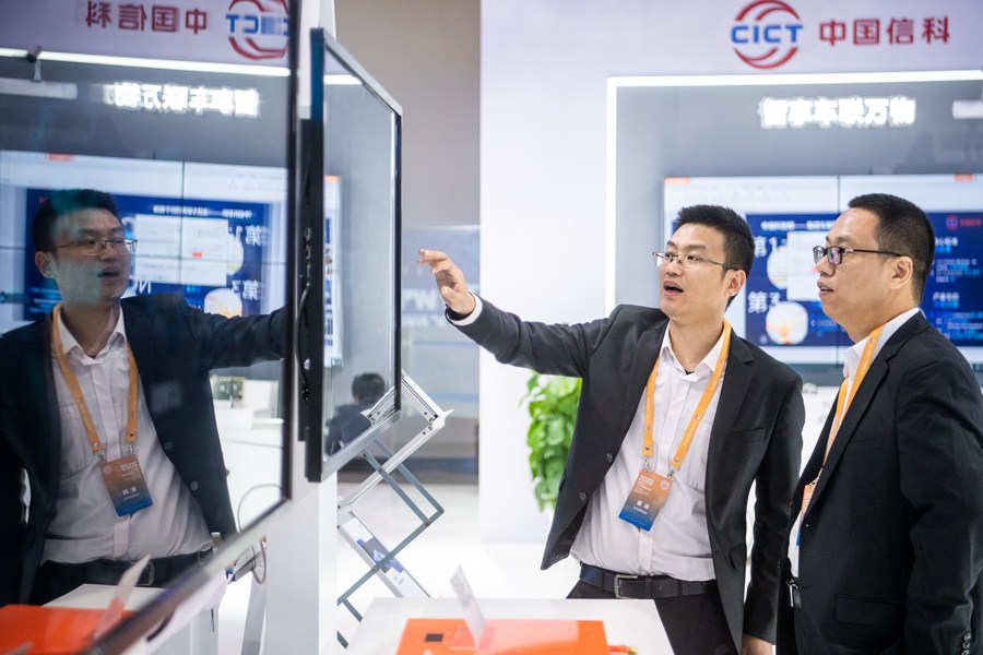 People visit an innovation achievements exhibition during the 2023 China 5G + Industrial Internet Conference in Wuhan, central China's Hubei Province, Nov. 20, 2023. (Xinhua/Wu Zhizun)
