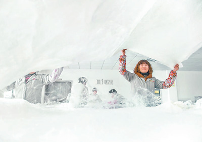 Workers stretch silk quilts at a factory in Zhenze township, Wujiang district, Suzhou city, east China's Jiangsu Province. (Photo courtesy of the Office of Party and Government Affairs of Zhenze town)
