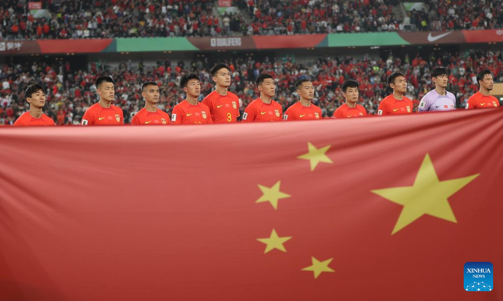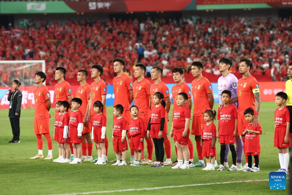 China's players line up before the Group C match between China and South Korea at the 2026 FIFA World Cup Asian qualifier in Shenzhen, south China's Guangdong Province, Nov. 21, 2023. (Xinhua/Wu Zhuang)