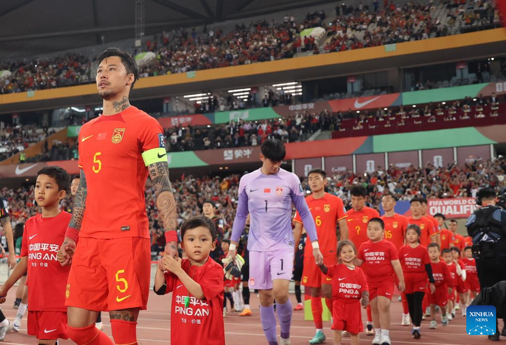 China's players enter the stadium before the Group C match between China and South Korea at the 2026 FIFA World Cup Asian qualifier in Shenzhen, south China's Guangdong Province, Nov. 21, 2023. (Xinhua/Jia Haocheng)