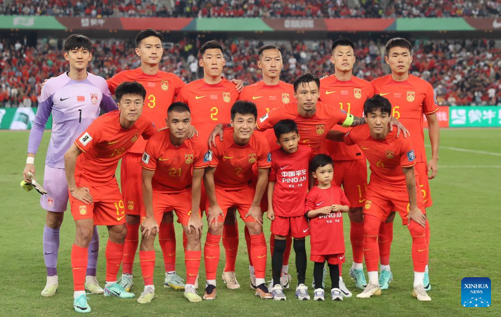 China's players pose for group photos before the Group C match between China and South Korea at the 2026 FIFA World Cup Asian qualifier in Shenzhen, south China's Guangdong Province, Nov. 21, 2023. (Xinhua/Jia Haocheng)