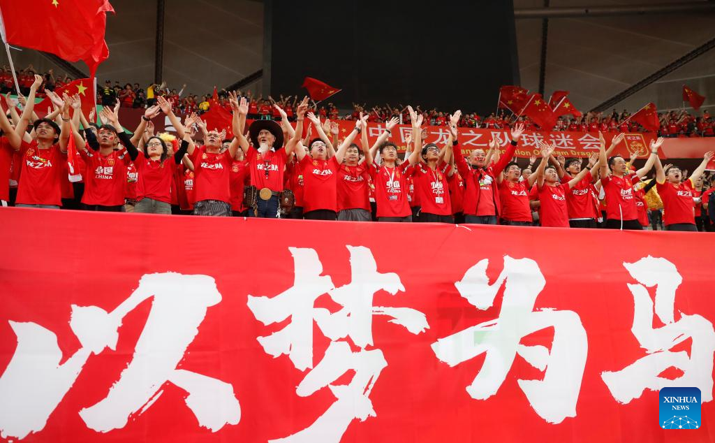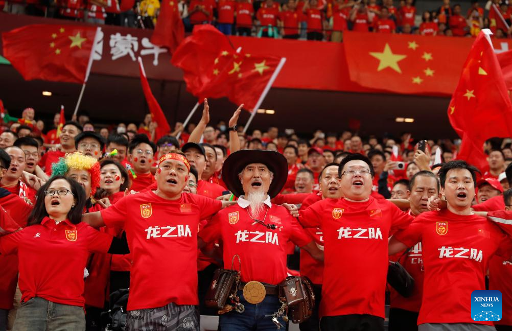 Supporters of team China cheer for the team before the Group C match between China and South Korea at the 2026 FIFA World Cup Asian qualifier in Shenzhen, south China's Guangdong Province, Nov. 21, 2023. (Xinhua/Jia Haocheng)