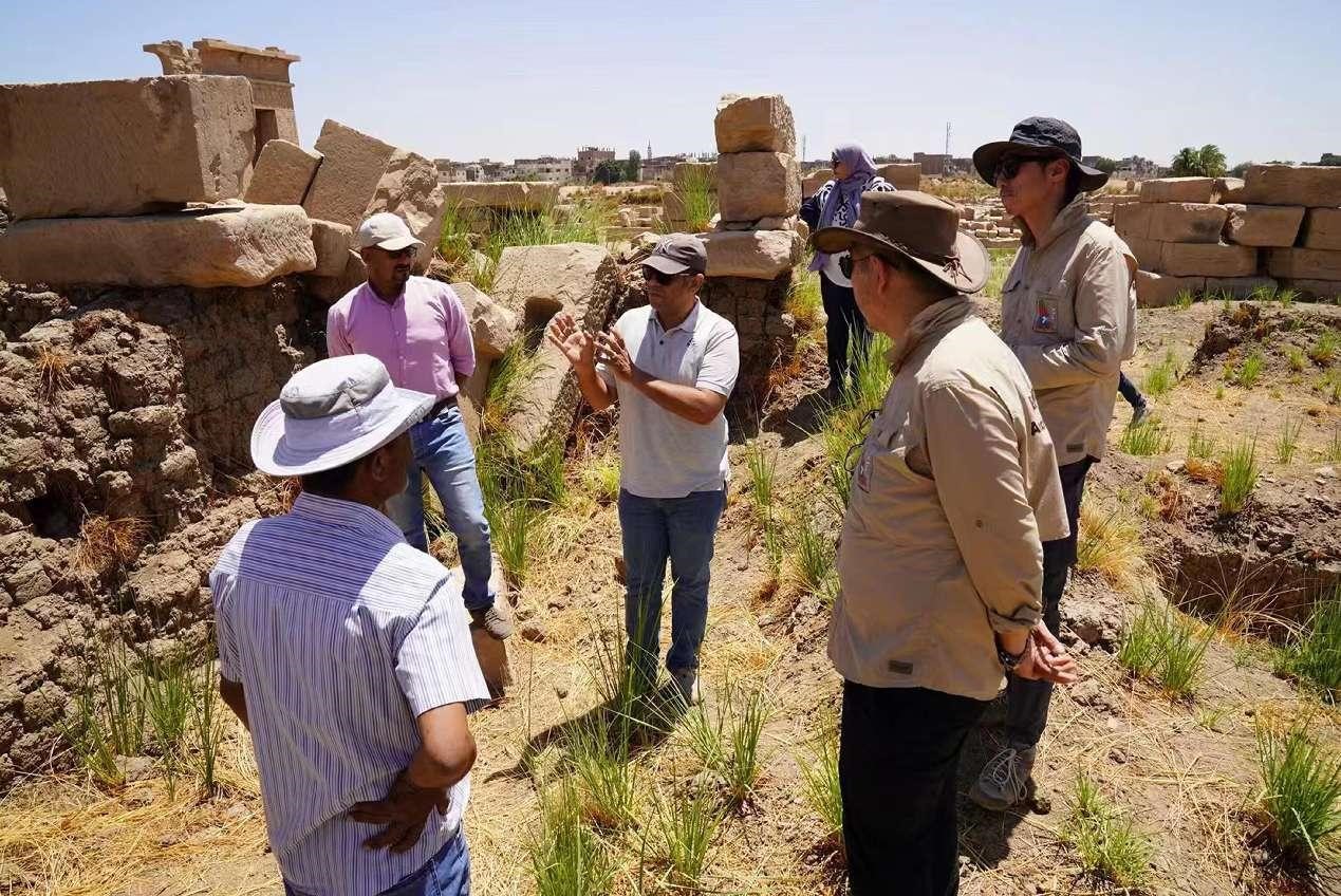 Members of a joint Chinese-Egyptian archeological mission work at Montu Temple in Luxor, Egypt. (Photo/Gao Wei)