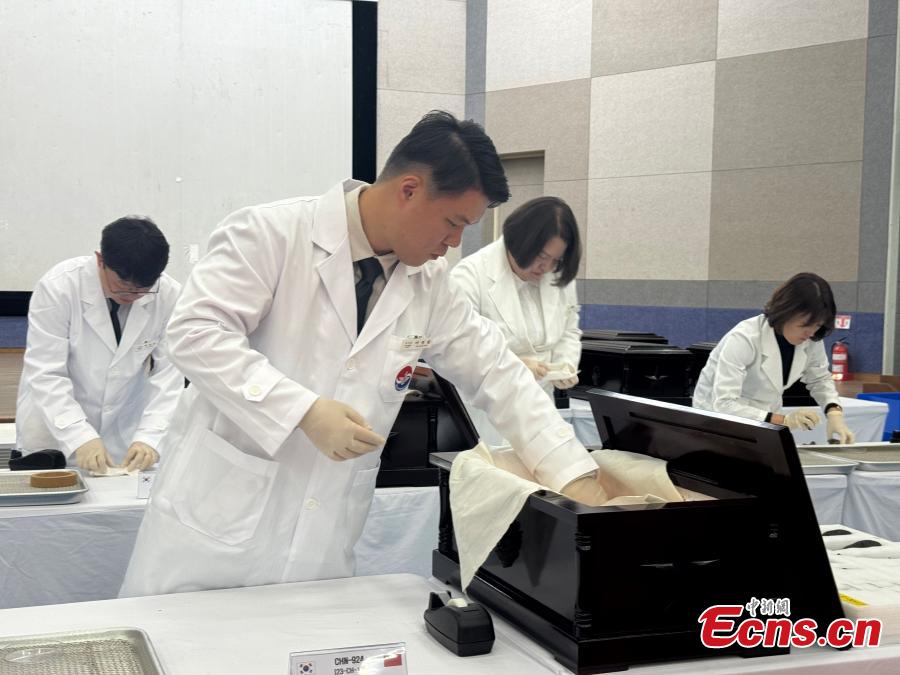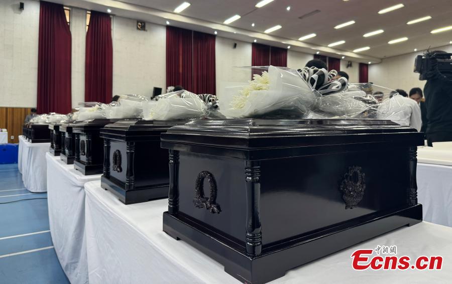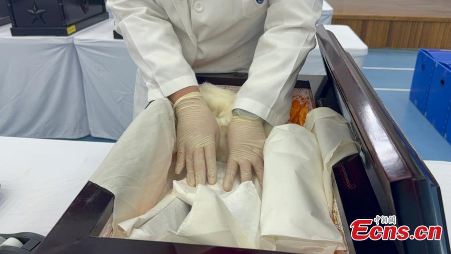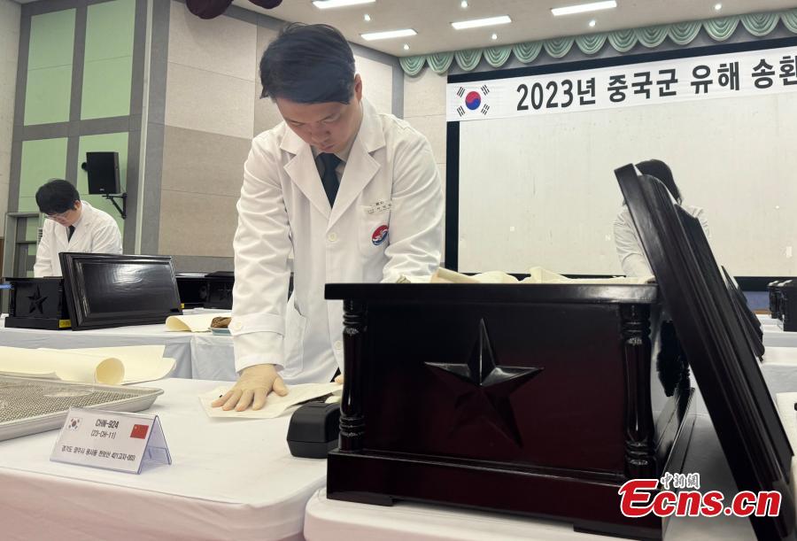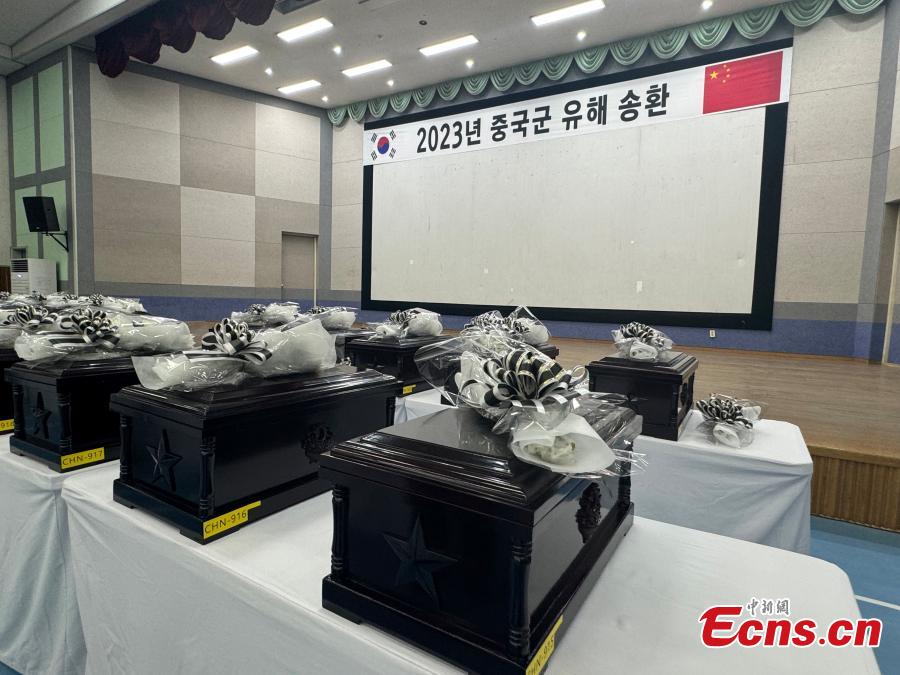 The remains of 25 Chinese soldiers killed in the 1950-53 Korean War were casketed in South Korea on Wednesday to be sent back to China. Since 2014, South Korea has returned the remains of 913 Chinese People's Volunteers martyrs killed in the Korean War. The repatriation ceremony is scheduled to be held at the Incheon International Airport on Thursday.