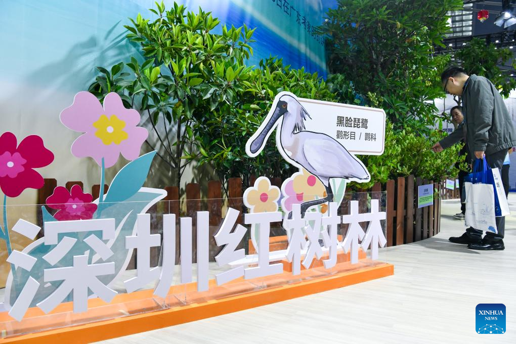 Visitors learn about mangroves during the 2023 China Marine Economy Expo (CMEE) in Shenzhen, south China's Guangdong Province, Nov. 23, 2023. The 2023 CMEE under the theme of "Open Cooperation and Win-win Sharing" kicked off in Shenzhen on Thursday. (Xinhua/Liang Xu)