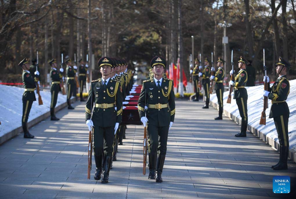 SHENYANG, Nov. 24 (Xinhua) -- The remains of 25 Chinese People's Volunteers (CPV) soldiers killed in the War to Resist U.S. Aggression and Aid Korea (1950-1953) were buried Friday in a cemetery in Shenyang, capital of northeast China's Liaoning Province.
