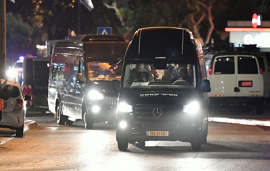 GAZA, Nov. 26 (Xinhua) -- The Al-Qassam Brigades, the armed wing of Hamas, released on Sunday the third batch of hostages from the Gaza Strip under a temporary ceasefire agreement with Israel.