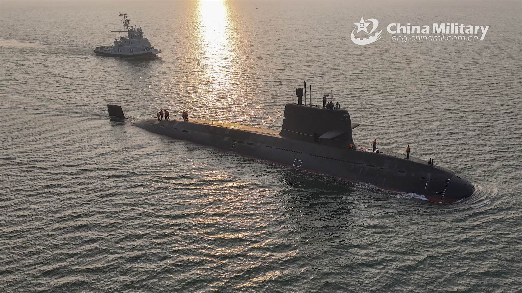 A submarine attached to a submarine flotilla with the navy under the PLA Northern Theater Command steams to the designated sea area for training exercise in mid-November, 2023. (eng.chinamil.com.cn/Photo by Zhang Nan)