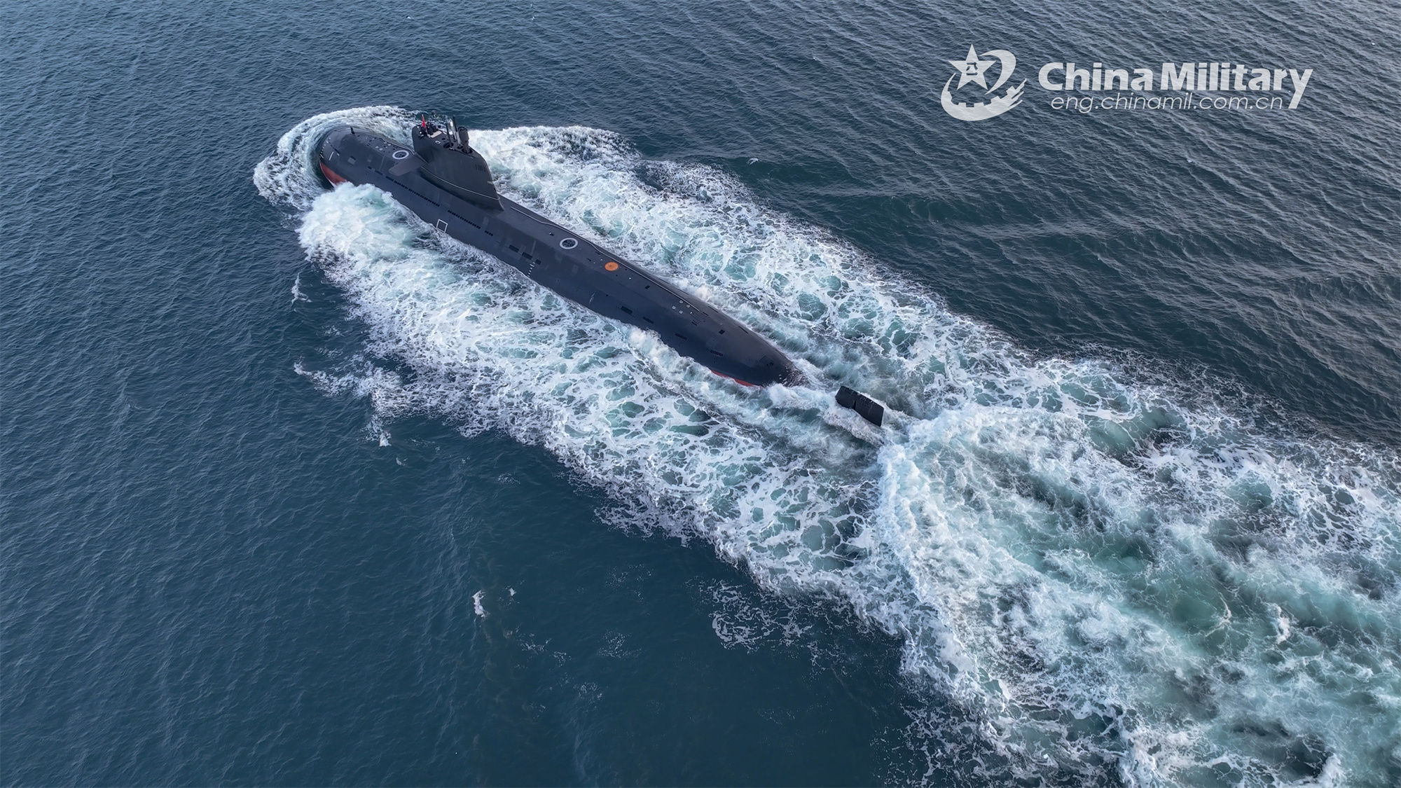 A submarine attached to a submarine flotilla with the navy under the PLA Northern Theater Command steams to the designated sea area for training exercise in mid-November, 2023. (eng.chinamil.com.cn/Photo by Zhang Nan)