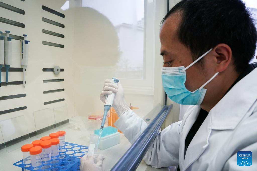 A staff member conducts research on snake venom at Qimen Institute of Snakebite in Qimen County of Huangshan City, east China's Anhui Province, Nov. 8, 2023. (Xinhua/Du Yu)