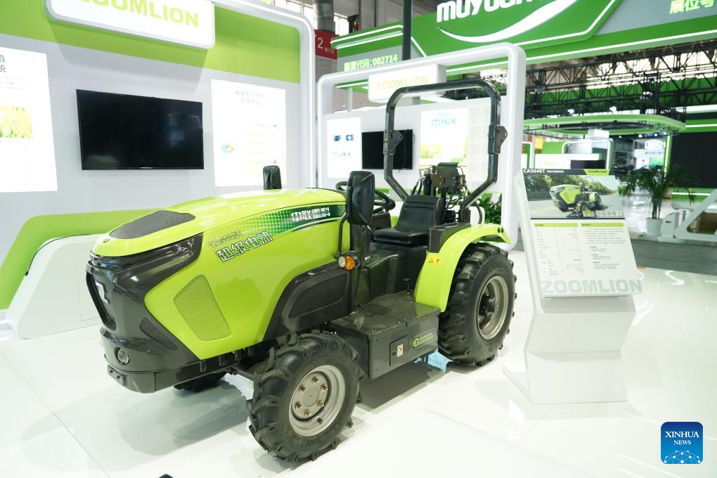 This photo taken on Nov. 26, 2023 shows a electric tractor at the China International Supply Chain Expo (CISCE) in Beijing, capital of China. The first CISCE will be held from Nov. 28 to Dec. 2 in Beijing. (Xinhua/Ren Chao)