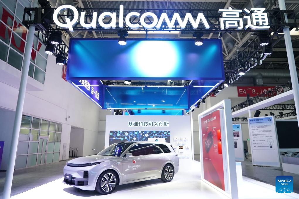 This photo taken on Nov. 26, 2023 shows the Qualcomm booth at the China International Supply Chain Expo (CISCE) in Beijing, capital of China. The first CISCE will be held from Nov. 28 to Dec. 2 in Beijing. (Xinhua/Ren Chao)