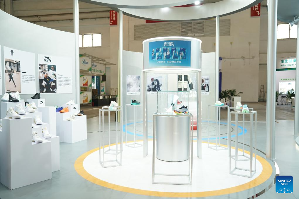This photo taken on Nov. 26, 2023 shows the booth of Chinese sportswear giant Anta at the China International Supply Chain Expo (CISCE) in Beijing, capital of China. The first CISCE will be held from Nov. 28 to Dec. 2 in Beijing. (Xinhua/Ren Chao)