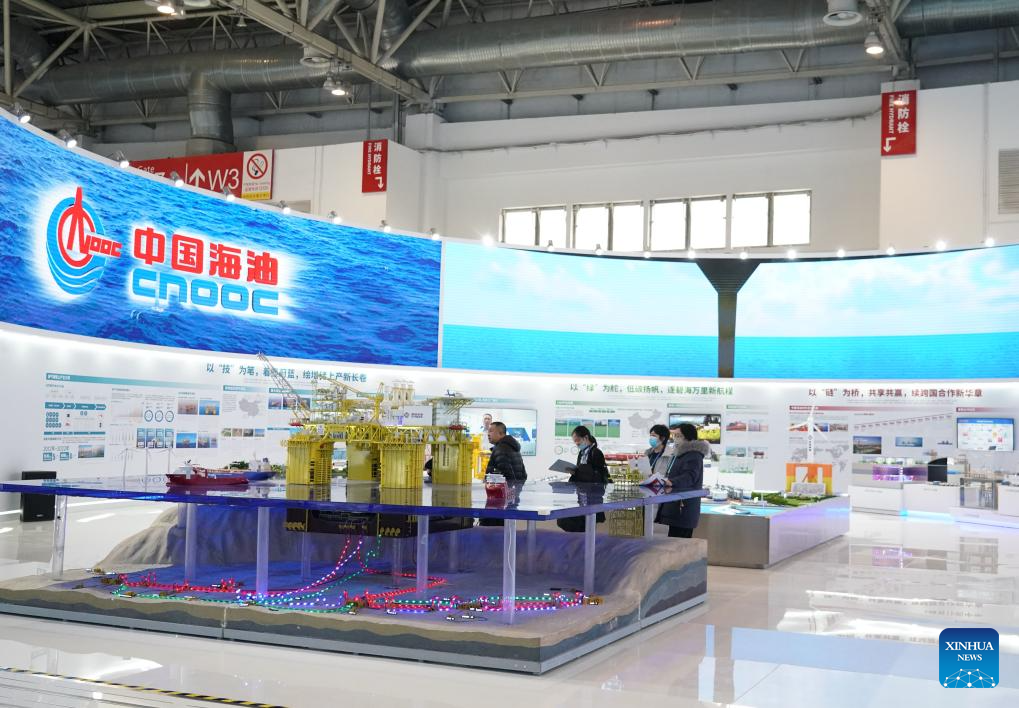 This photo taken on Nov. 26, 2023 shows the booth of China National Offshore Oil Corporation (CNOOC) Ltd. at the China International Supply Chain Expo (CISCE) in Beijing, capital of China. The first CISCE will be held from Nov. 28 to Dec. 2 in Beijing. (Xinhua/Ren Chao)