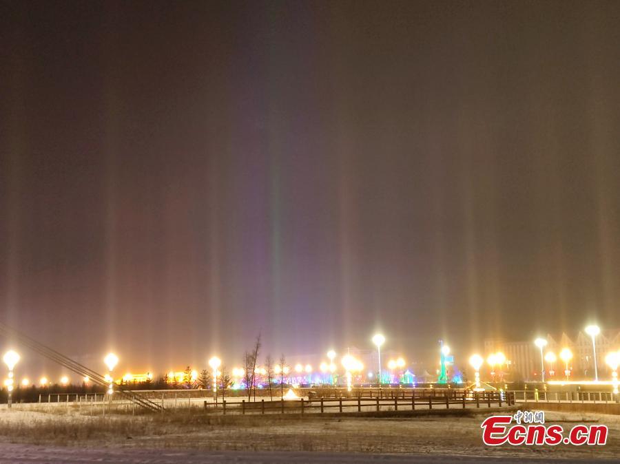 Stunning light pillars dazzle night sky in Inner Mongolia