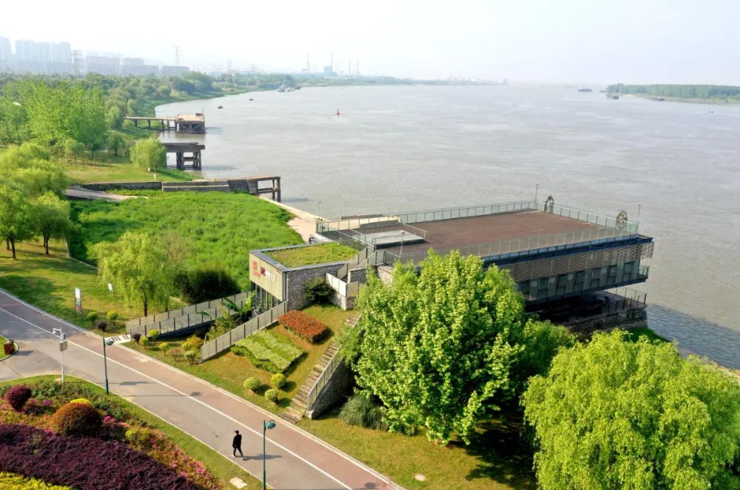 A library situated on a tranquil bank of the Yangtze River in Tongling, Anhui province, April 20, 2023. [Photo/Xinhua]