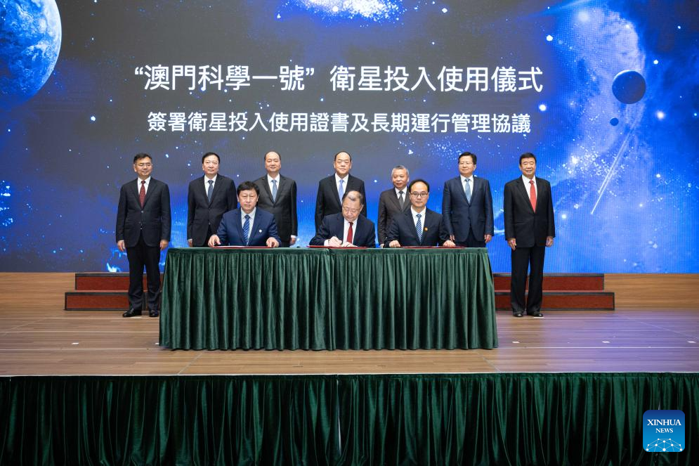 At the ceremony, the "Macao Science 1" satellites were certified to be officially put into use. An agreement was signed on the long-term operation of the satellites. Lunar soil was put on display in Macao for the first time.