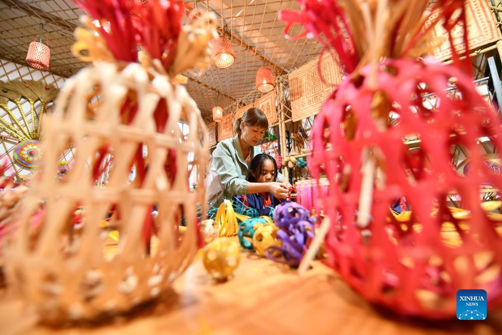 Students practice the bamboo weaving skill at Nandu primary school in Cenxi City, south China's Guangxi Zhuang Autonomous Region, Nov. 28, 2023. As a local intangible cultural heritage, the bamboo weaving skill was introduced to Nandu primary school in recent years, which enriched the extracurricular activities of the students. (Xinhua/Huang Xiaobang)