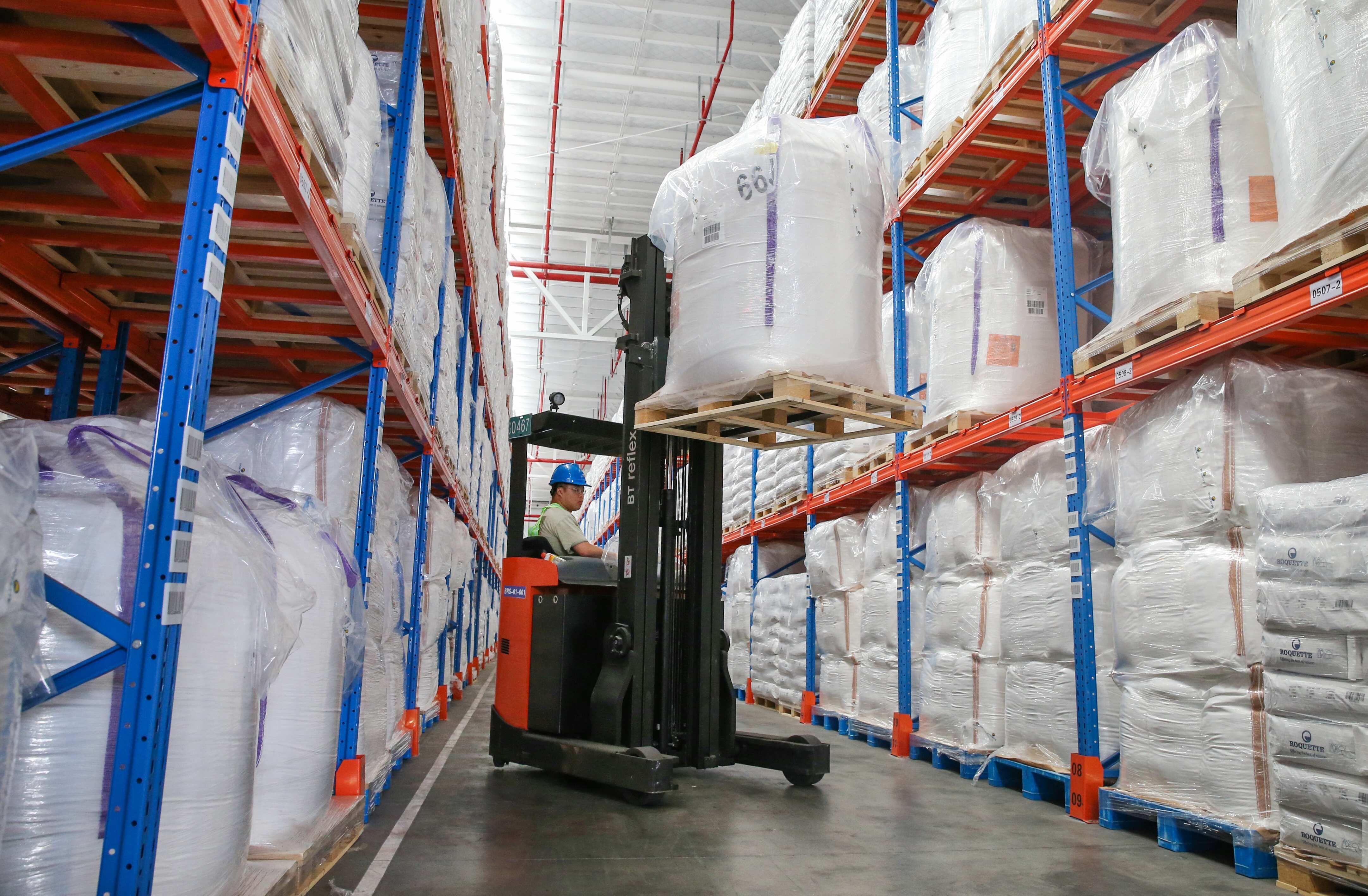 Transit goods are loaded and unloaded in a warehouse at a Belt and Road supply chain base at Lianyungang Economic and Technological Development Area, east China's Jiangsu province. (People's Daily Online/Wang Jianmin)