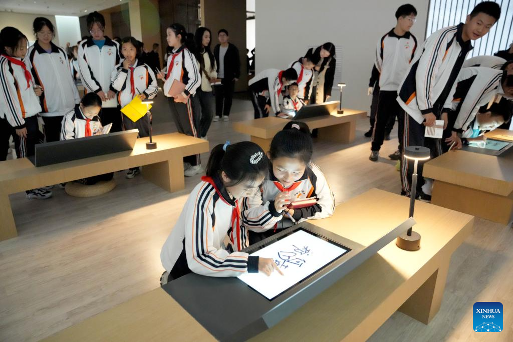 Students sign signatures after visiting the Gansu Jiandu Museum in Lanzhou, northwest China's Gansu Province, Oct. 25, 2023. (Xinhua/Wang Yuguo)