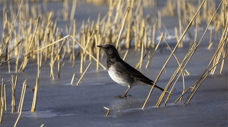 A migratory bird rests in the Keluke Lake-Tuosu Lake Nature Reserve in Haixi Mongolian and Tibetan Autonomous Prefecture, northwest China's Qinghai Province. (Photo/An Zi)