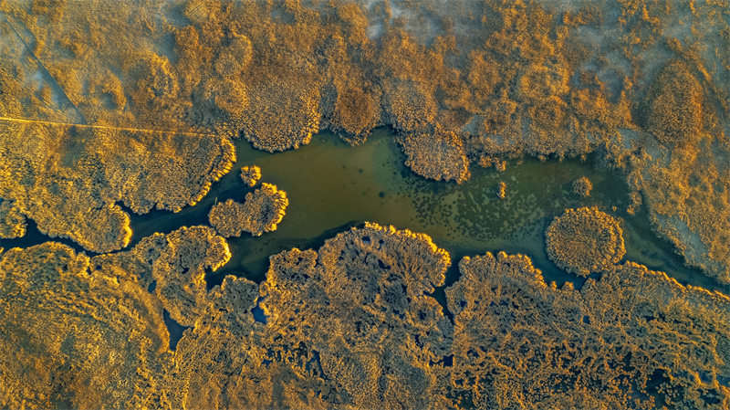 Aerial photo shows a wetland in the Keluke Lake-Tuosu Lake Nature Reserve in Haixi Mongolian and Tibetan Autonomous Prefecture, northwest China's Qinghai Province. (Photo/An Zi)