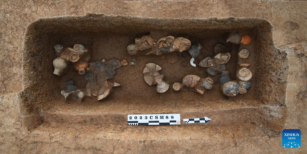 This undated file photo shows relics discovered at the Sidun Site in Tianning District of Changzhou, east China's Jiangsu Province. (Nanjing Museum/Handout via Xinhua)