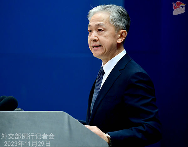 Foreign Ministry spokesman Wang Wenbin speaks at a press conference in Beijing, on Nov 29, 2023. [Photo/fmprc.gov.cn]