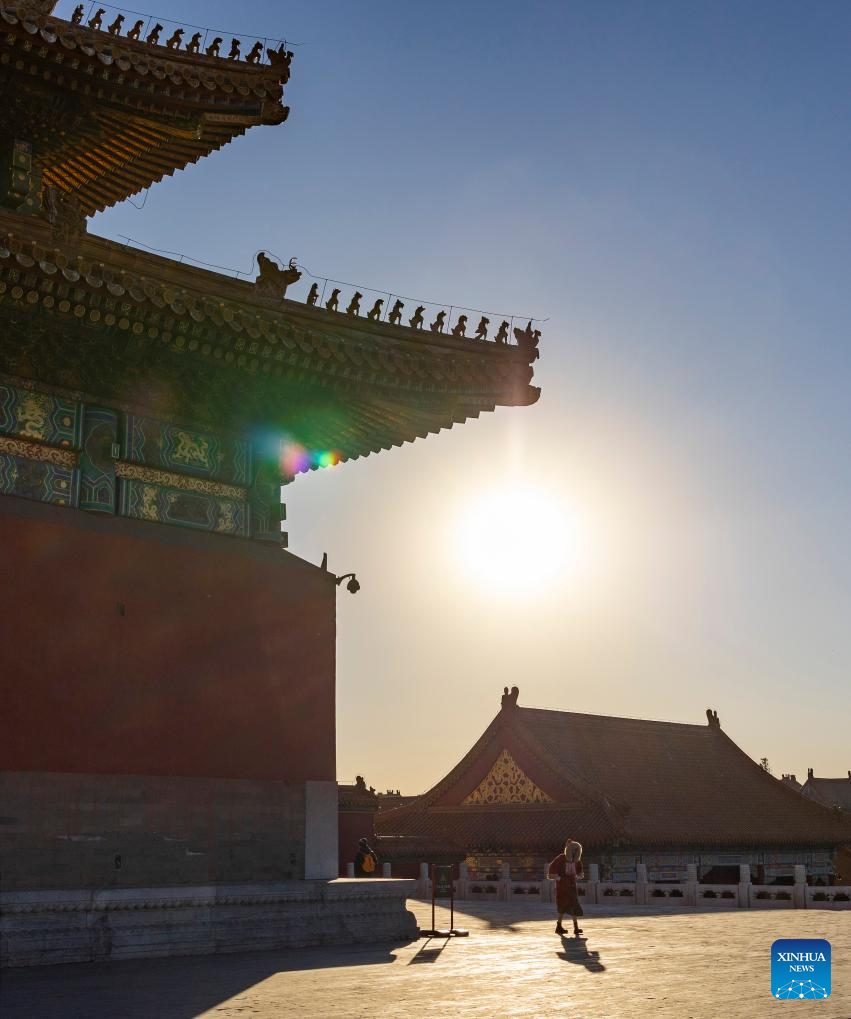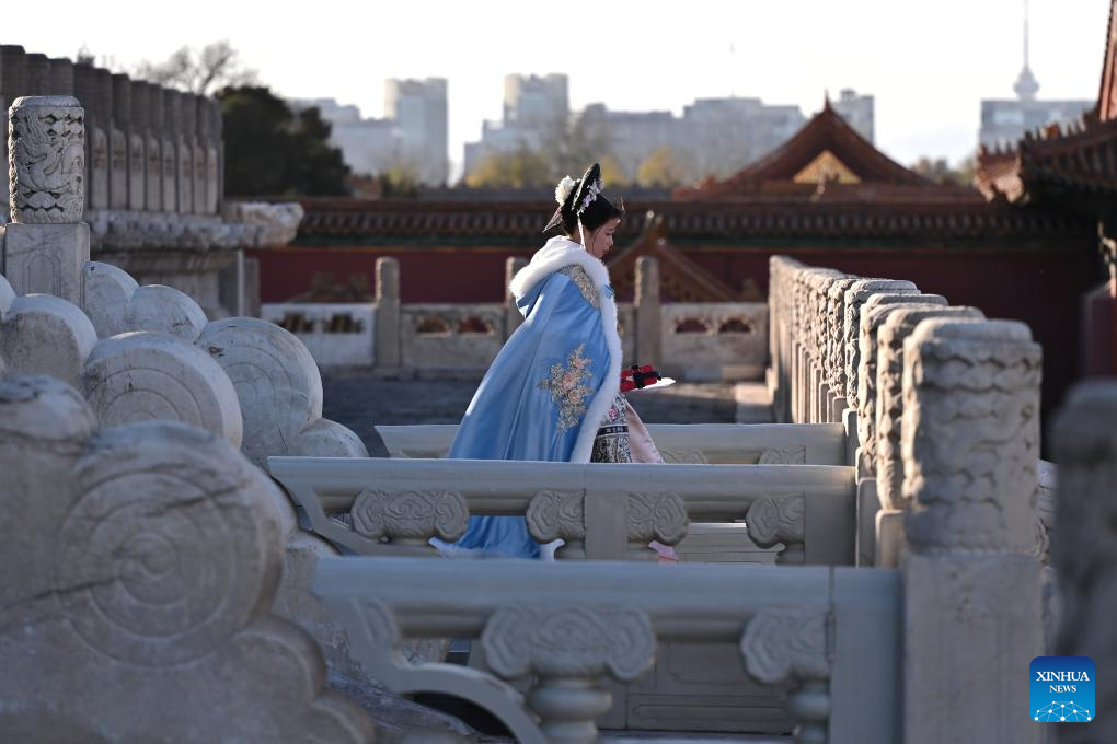 A tourist visits the Palace Museum, also known as the Forbidden City, in Beijing, capital of China, Nov. 29, 2023. (Xinhua/Li Xin)