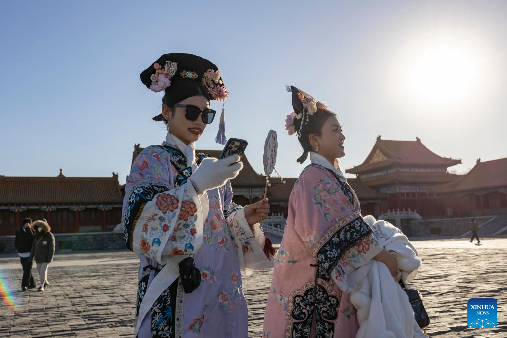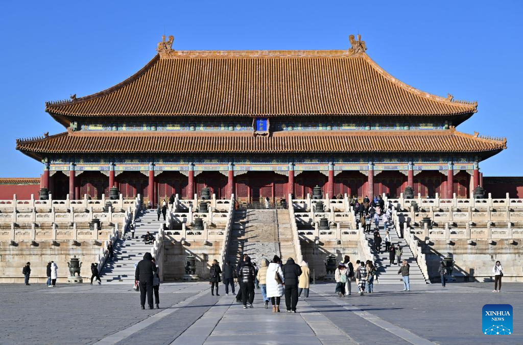 Tourists visit the Palace Museum, also known as the Forbidden City, in Beijing, capital of China, Nov. 29, 2023. (Xinhua/Chen Yehua)
