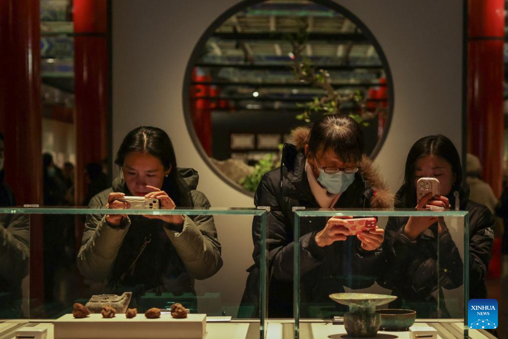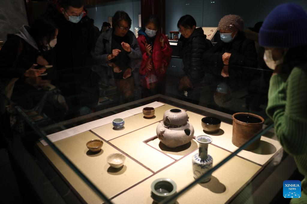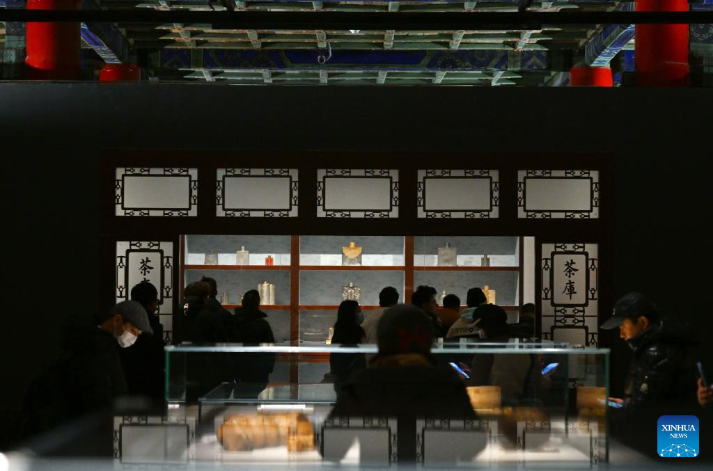 Tourists visit an exhibition on Chinese tea culture at the Palace Museum, also known as the Forbidden City, in Beijing, capital of China, Nov. 29, 2023. (Xinhua/Zhang Yuwei)
