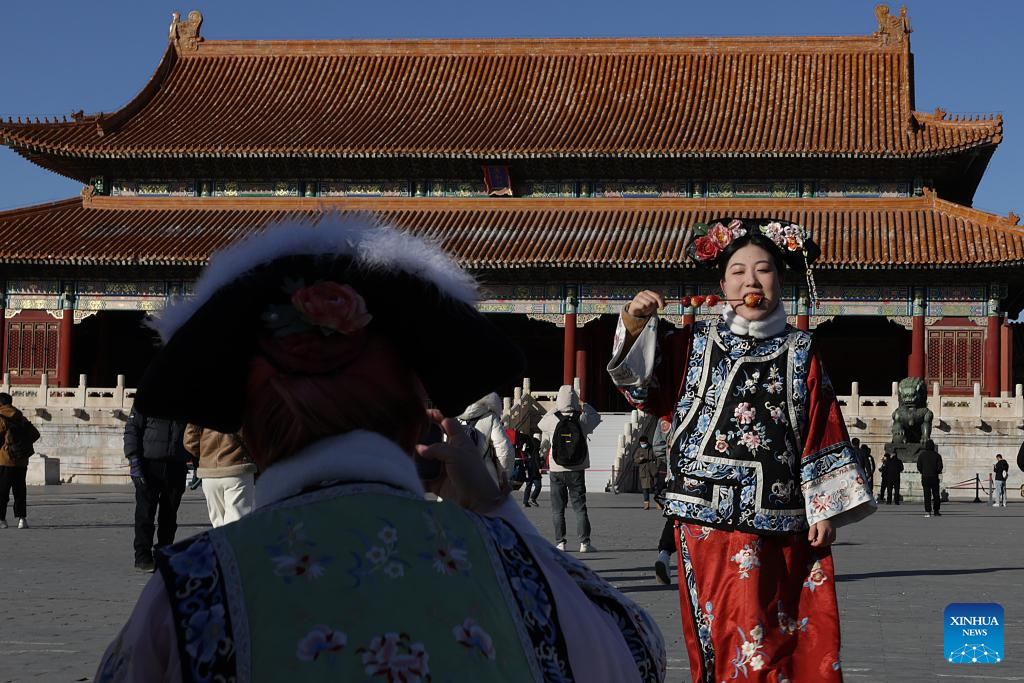 Tourists visit the Palace Museum, also known as the Forbidden City, in Beijing, capital of China, Nov. 29, 2023. (Xinhua/Li Xin)