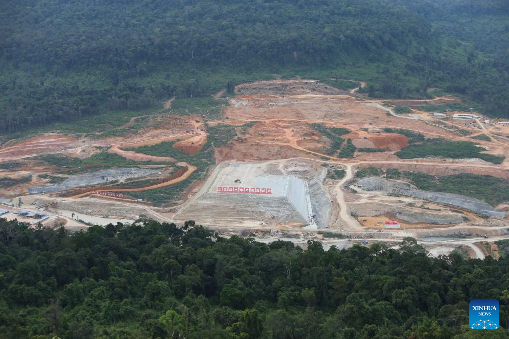 This photo taken on Nov. 30, 2023 shows the construction site of the Chinese-invested Cambodia Upper Tatay Hydropower Station in Koh Kong province, Cambodia. The project of the Chinese-invested Cambodia Upper Tatay Hydropower Station will increase the reliable source of clean energy in Cambodia, contributing further to socioeconomic development and poverty reduction, Cambodian Prime Minister Hun Manet said on Thursday. (Photo by Ly Lay/Xinhua)