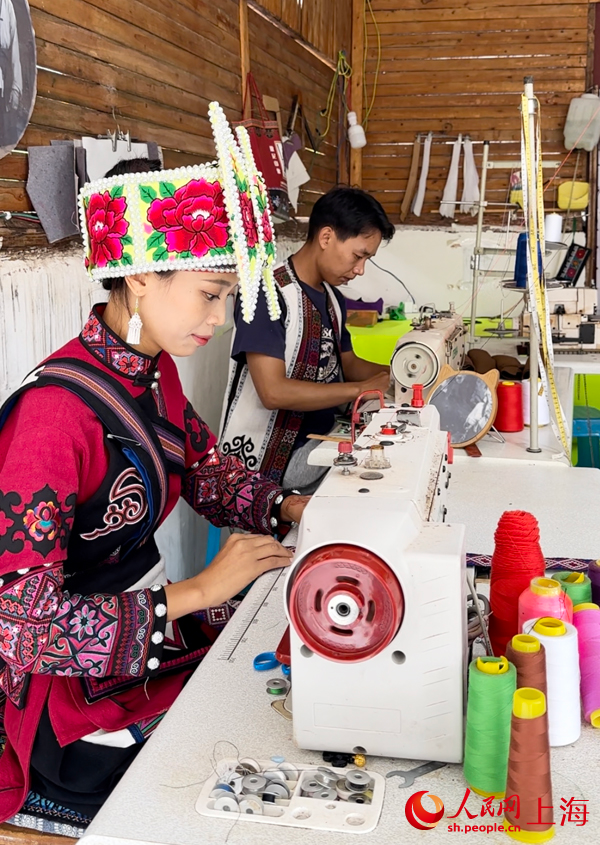 Fan and her husband are currently engaged in producing ethnic clothing. During peak tourist seasons, their relatives also join them in running the clothing store. Fan said, "This year, the number of tourists has significantly increased, and our daily turnover can reach several thousand yuan. It is almost double what I used to earn while working in a factory."