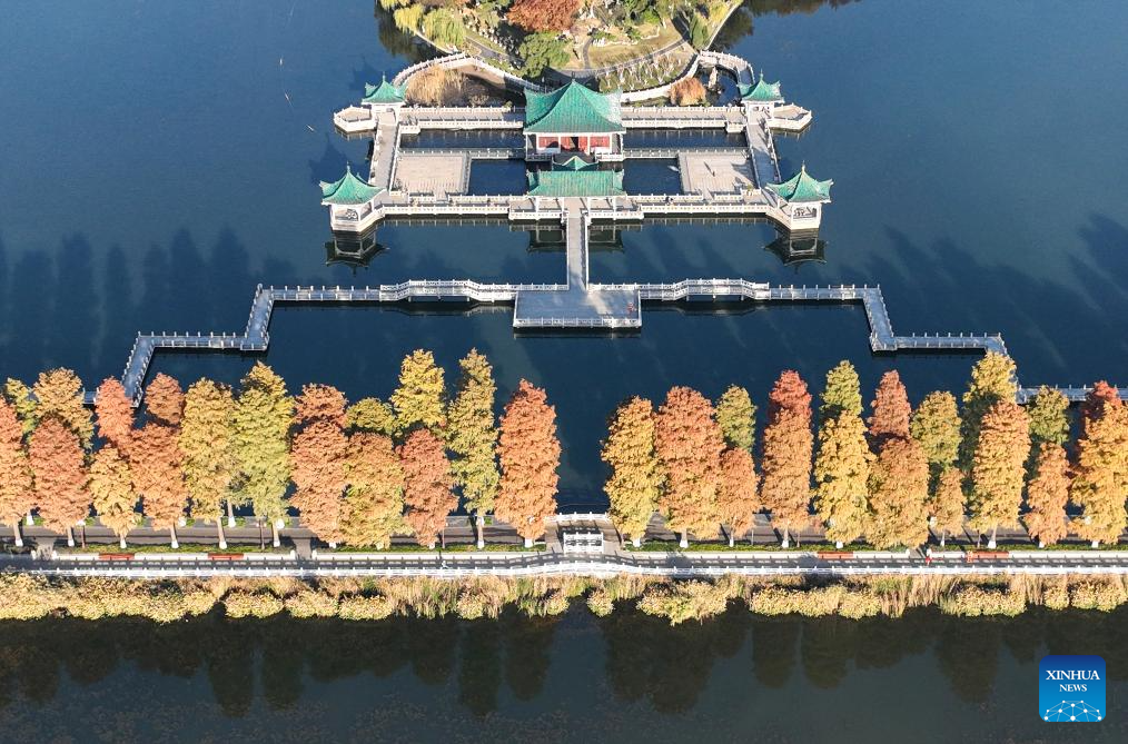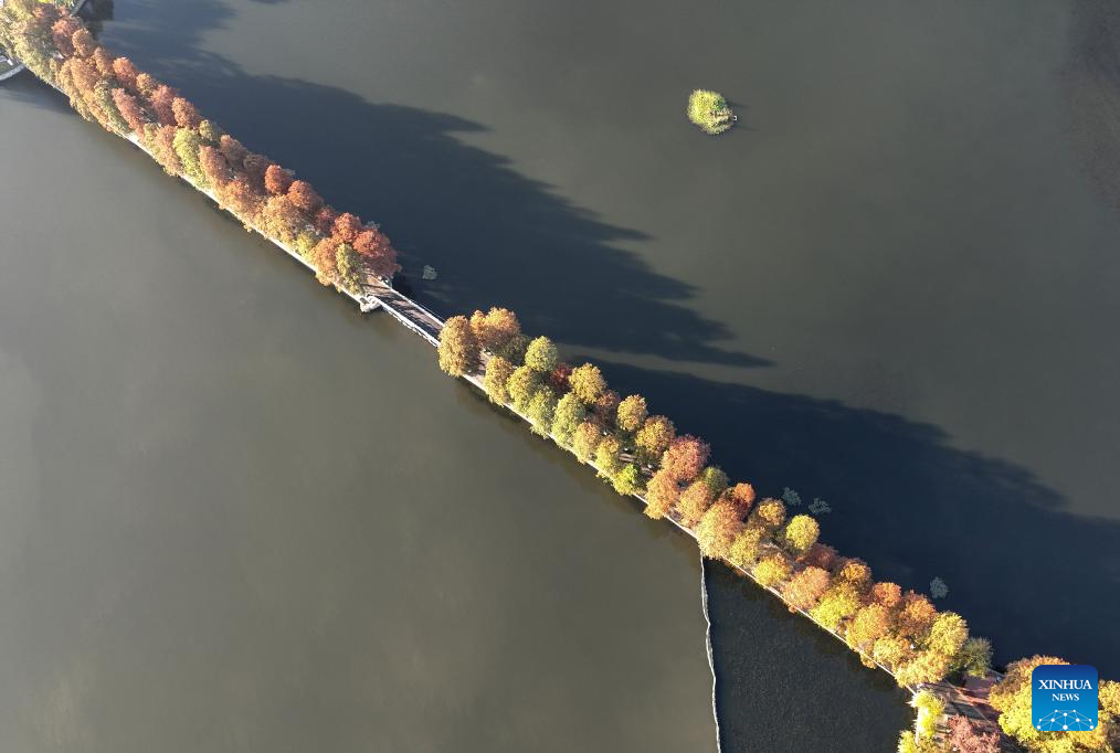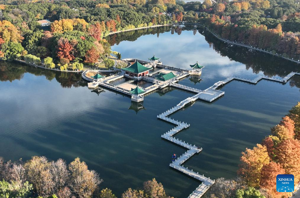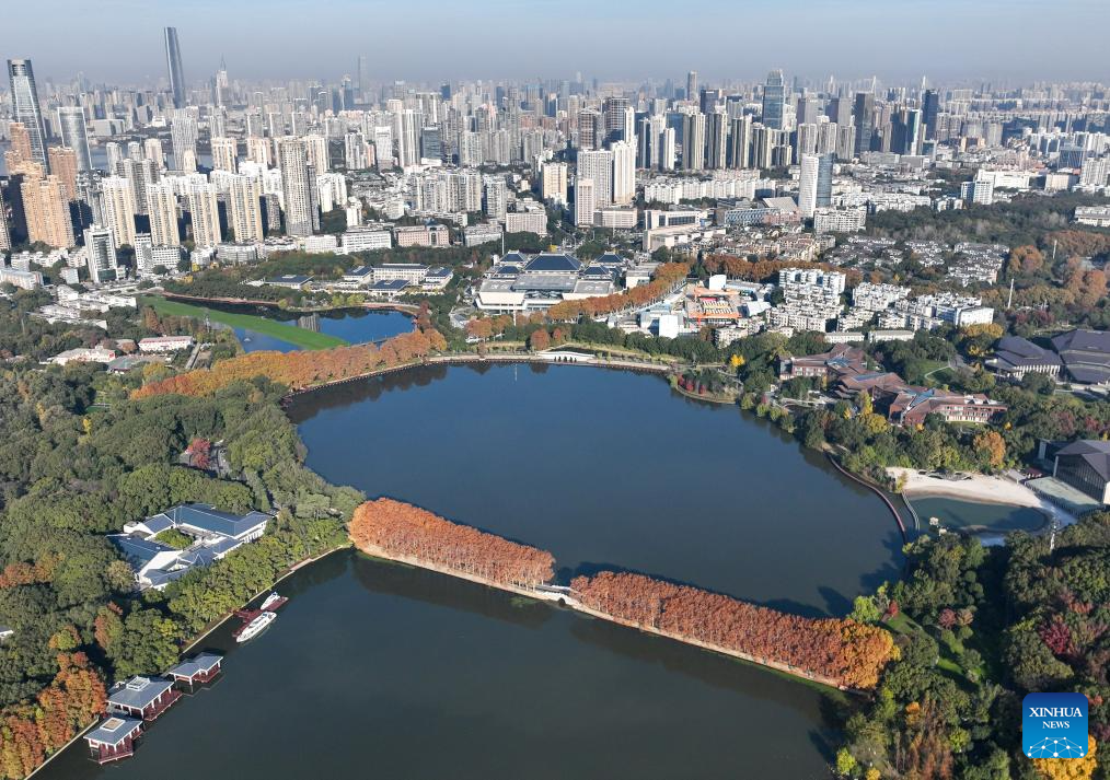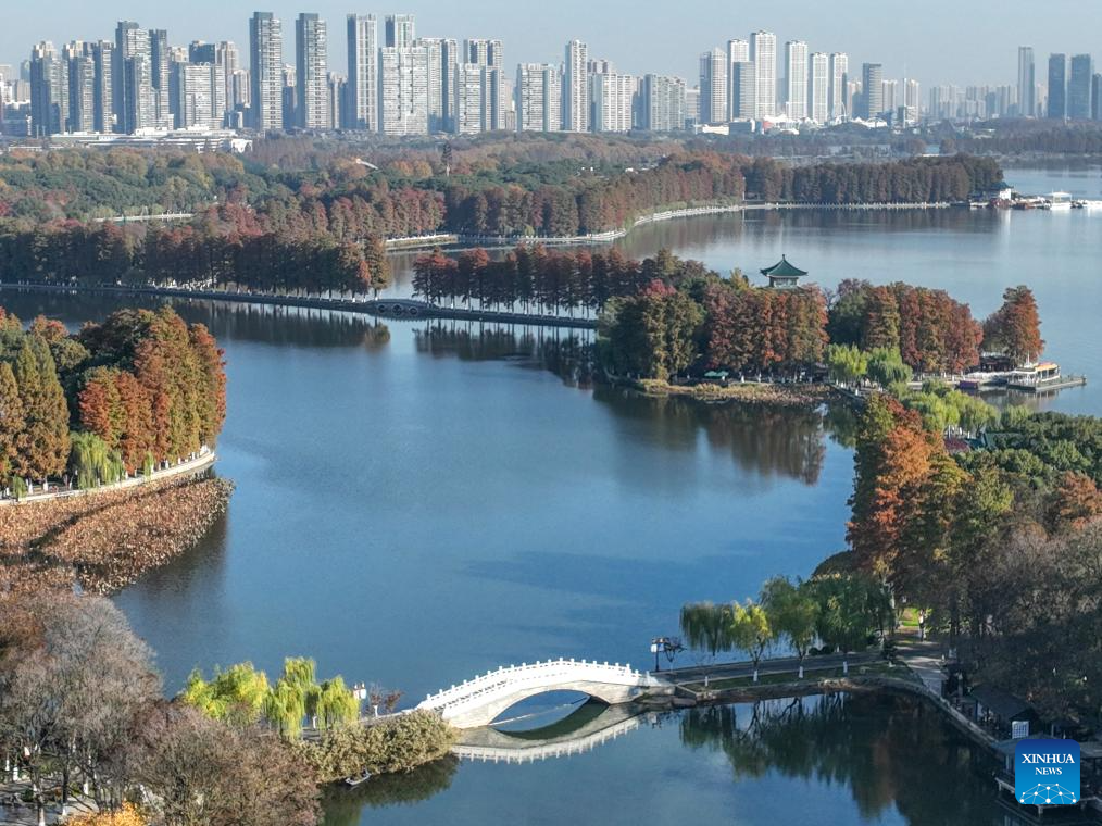This aerial photo taken on Dec. 1, 2023 shows the scenery of Donghu Lake in Wuhan, central China's Hubei Province. (Xinhua/Cheng Min)